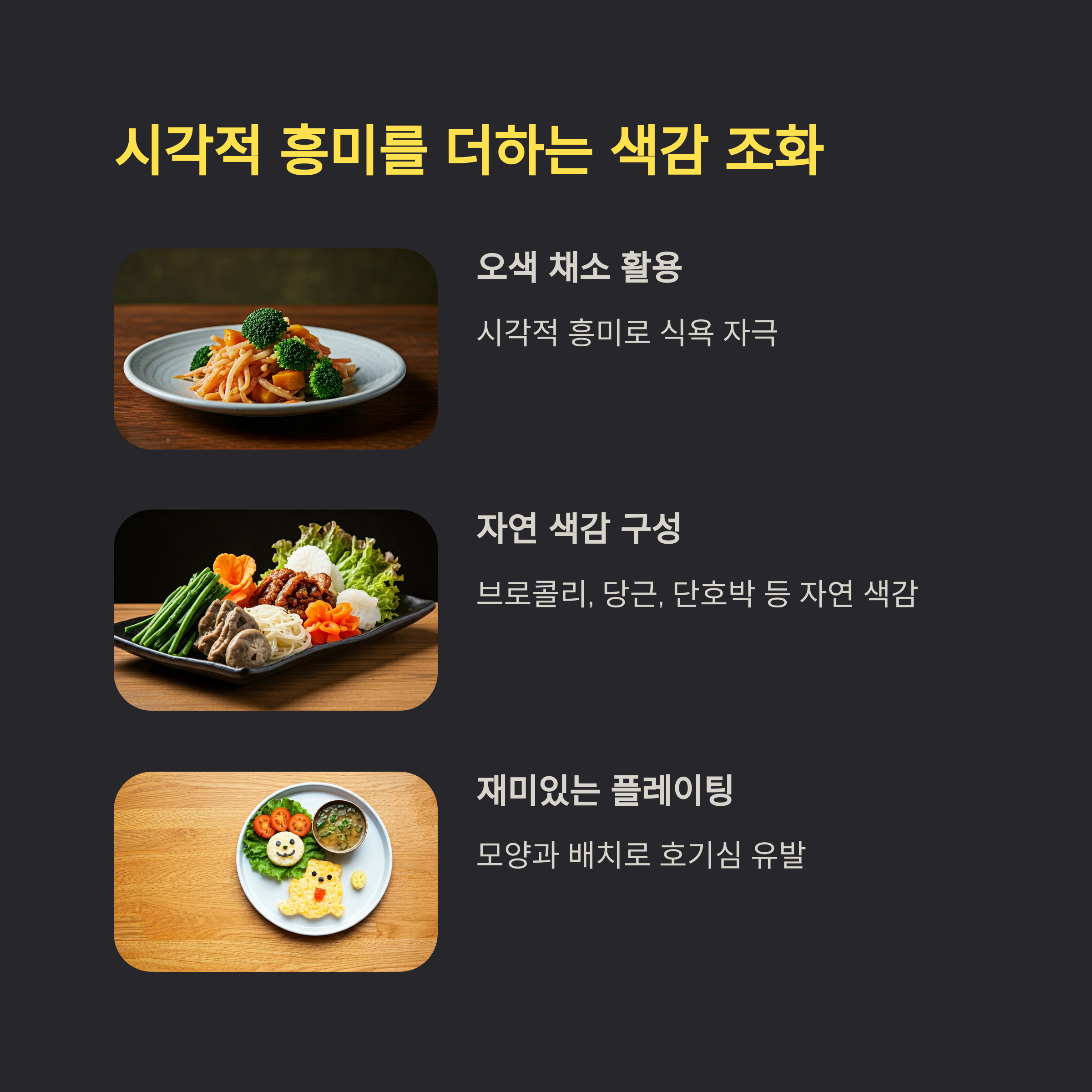 아이들이 좋아하는 반찬은 대부분 부드러운 식감과 선명한 색감을 가지고 있습니다. 고추장 소스를 사용한 반찬도 이를 고려해 재료를 조합하면 훨씬 더 반응이 좋습니다. 예를 들어 주황색 당근, 노란 단호박, 초록 브로콜리, 흰색 두부, 붉은 색의 소스를 적절히 배치하면 한 접시 안에서 색상 대비가 살아나 식사 흥미를 높일 수 있습니다. 식감은 너무 질기거나 뻣뻣하지 않게 하며, 살짝 쫄깃한 닭가슴살이나 부드러운 계란말이와도 잘 어울립니다. 아이들 시선에서 식사 시간을 즐겁게 만들 수 있는 구성과 플레이팅을 함께 고려하는 것이 좋습니다.
