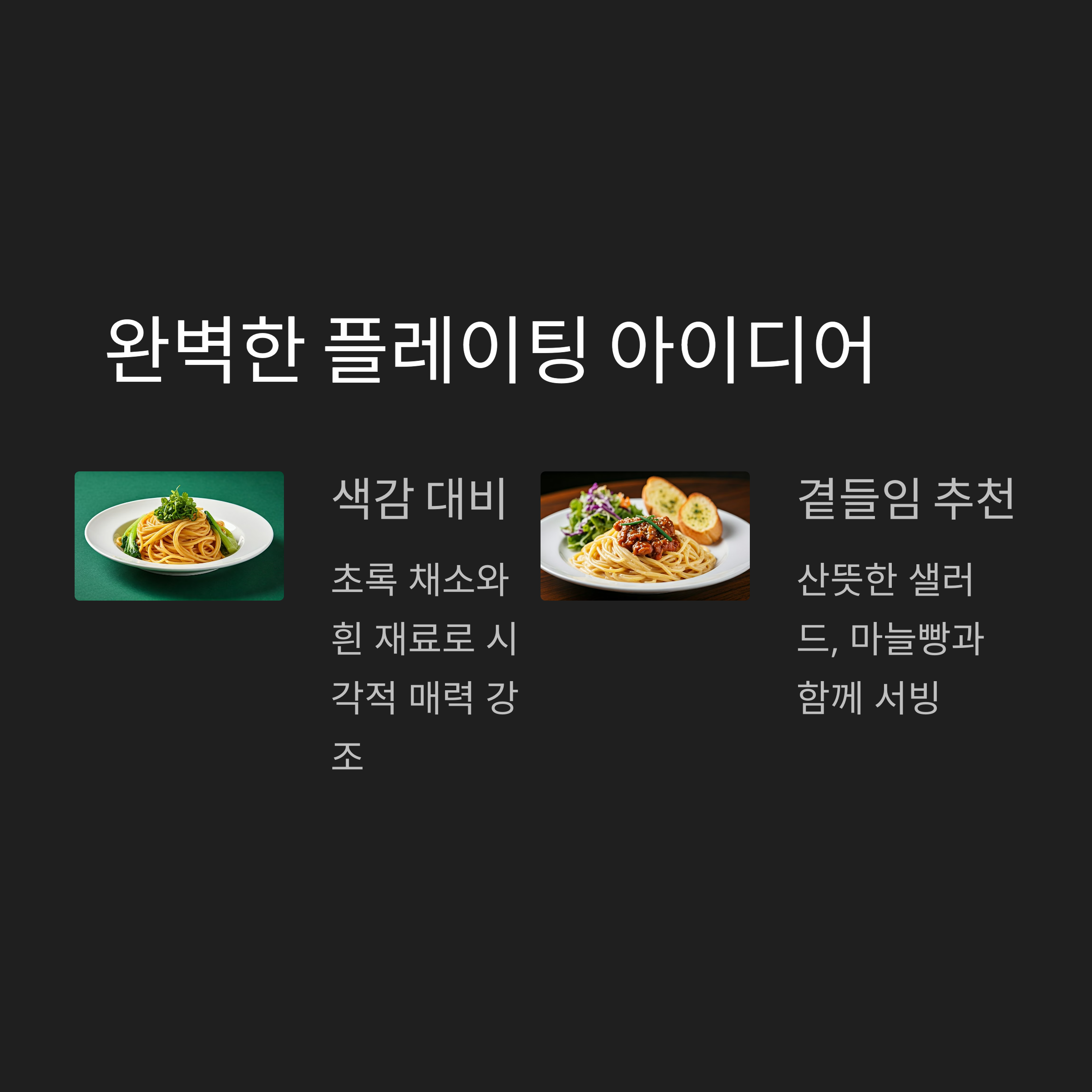 된장 크림파스타는 그 자체로도 훌륭하지만, 함께 곁들이는 음식과 플레이팅에 신경 쓰면 식사의 완성도가 더욱 높아집니다. 파스타의 진한 풍미를 중화시켜줄 수 있는 샐러드, 특히 발사믹 드레싱을 곁들인 루꼴라 샐러드나 오렌지 슬라이스가 들어간 과일 샐러드는 색감과 맛 모두 잘 어울립니다. 반찬으로는 절임무나 피클처럼 산미가 있는 메뉴가 좋으며, 버섯구이, 마늘빵도 잘 어울립니다. 플레이팅은 깊은 그릇보다는 넓은 접시에 면을 소용돌이처럼 돌려 담고, 위에 버섯이나 고명, 쪽파를 포인트로 얹으면 고급 레스토랑 분위기를 낼 수 있습니다. 된장의 색감을 고려해 초록색과 흰색 재료로 대비를 주면 더욱 보기 좋습니다.