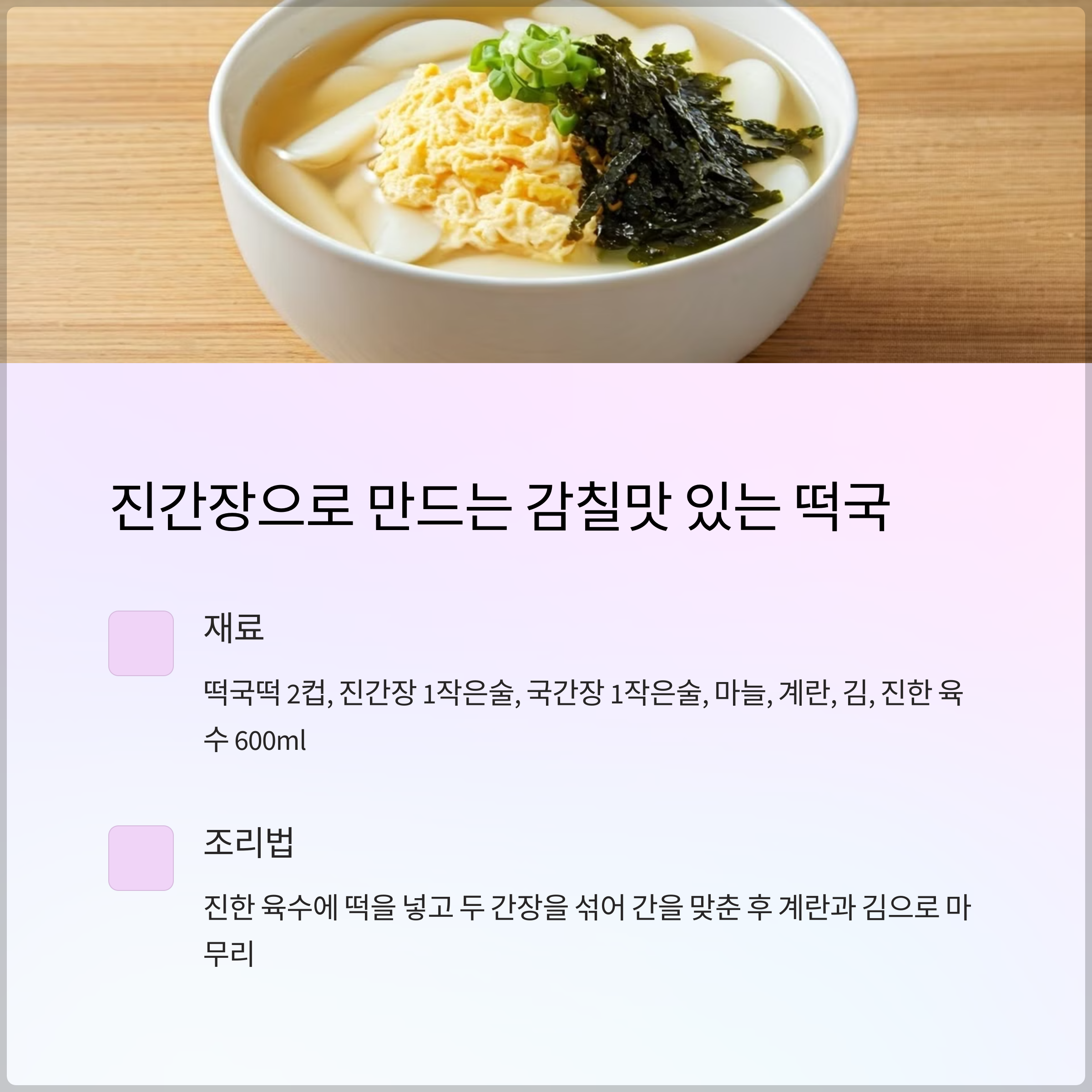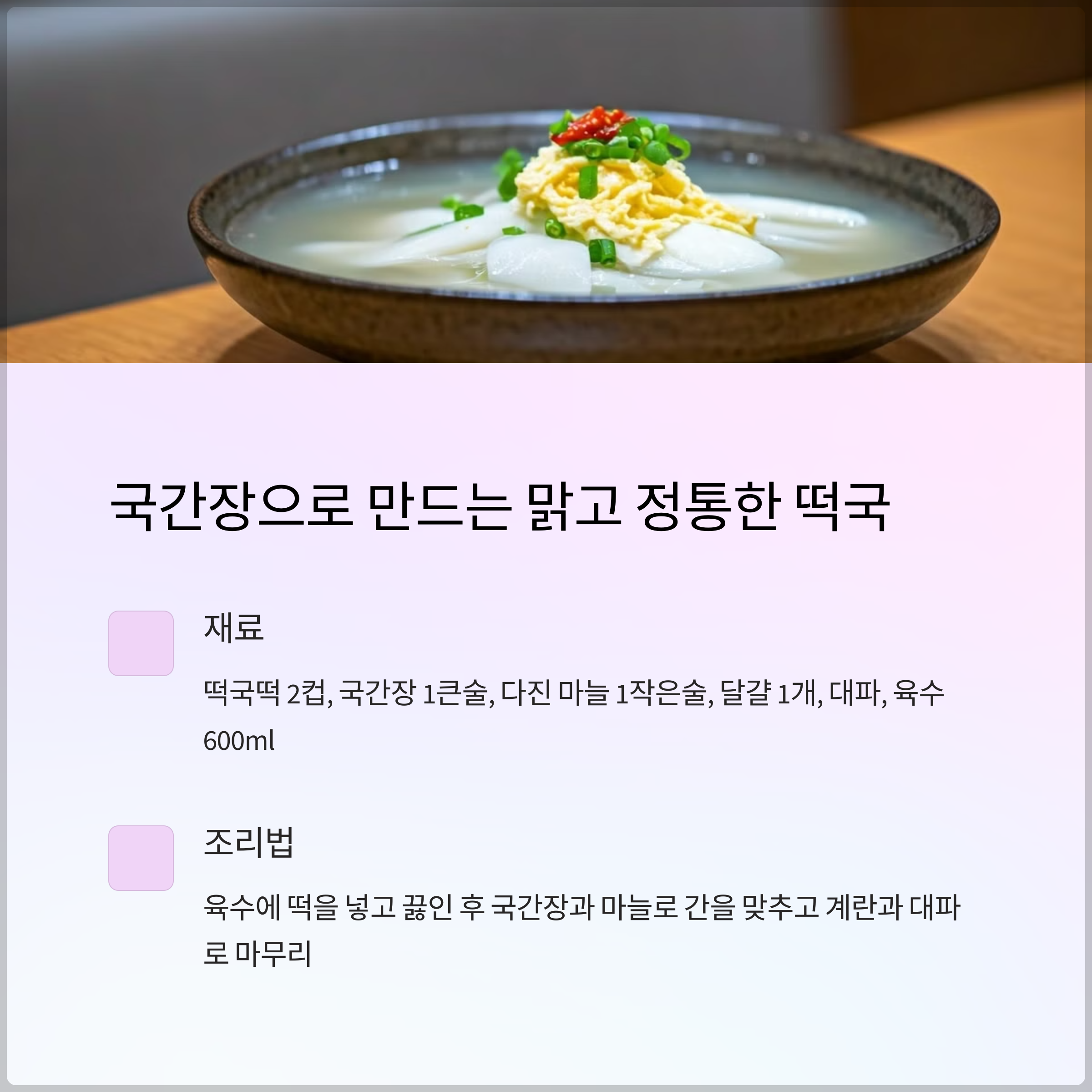 1. 국간장을 사용한 맑고 정통한 떡국 (2인분)