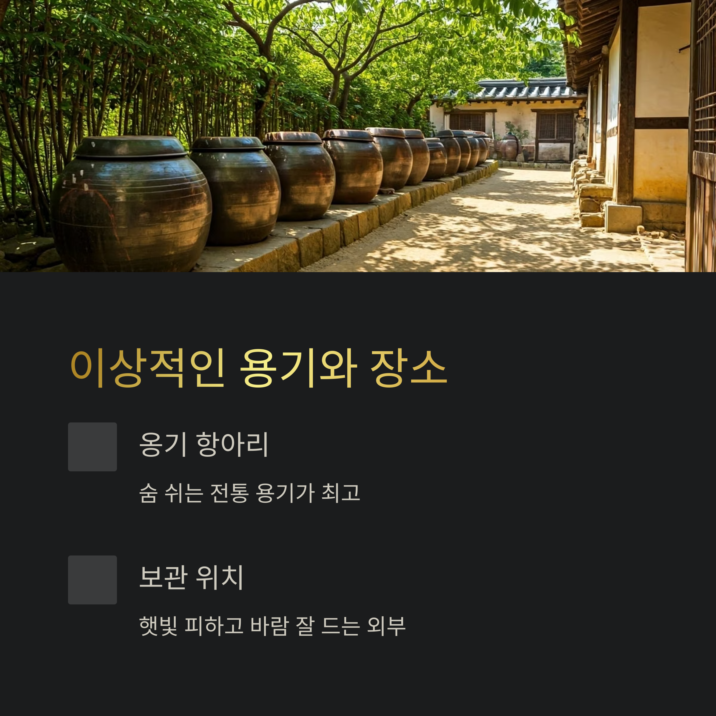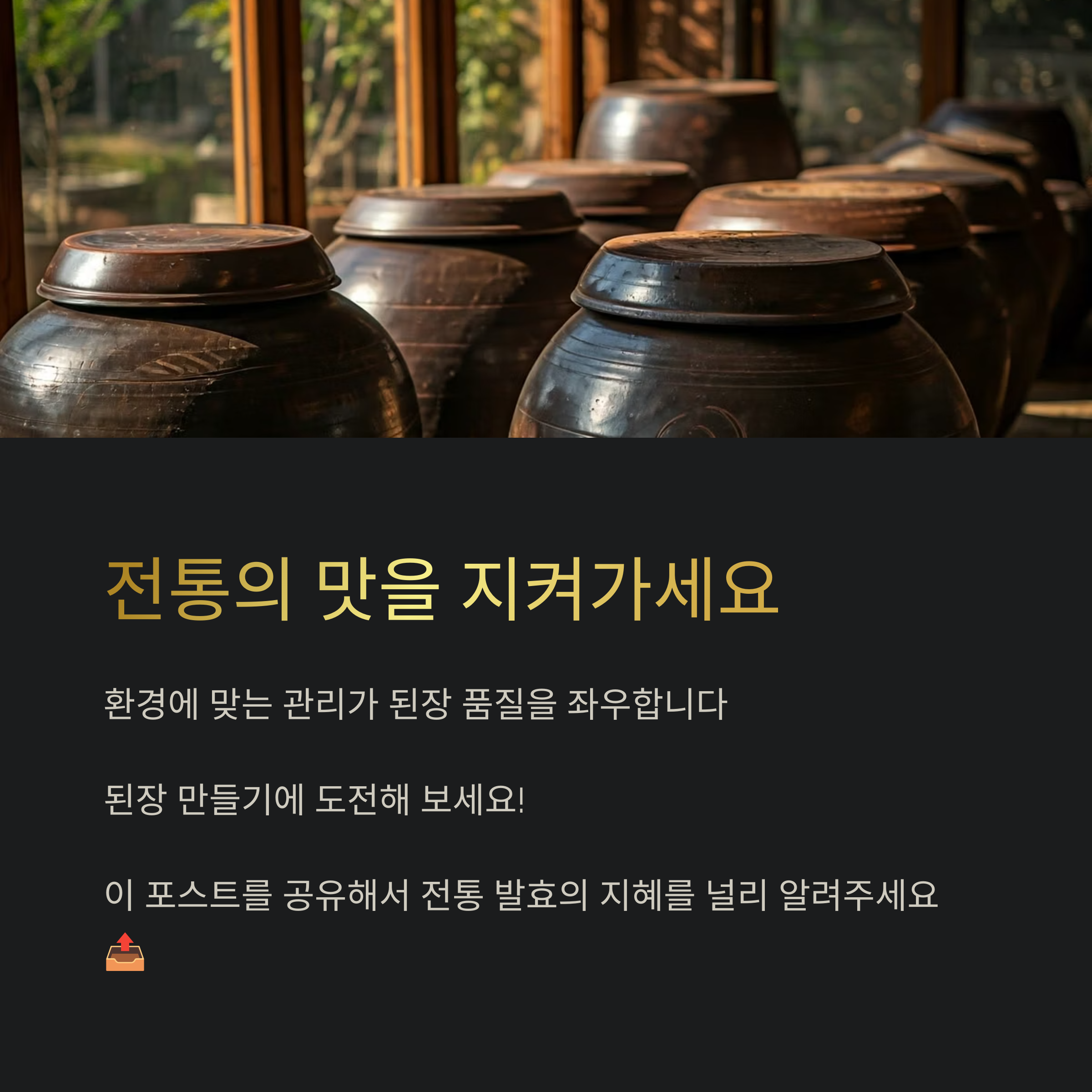 📌 6. 정리: 된장 숙성, 환경이 맛을 좌우한다