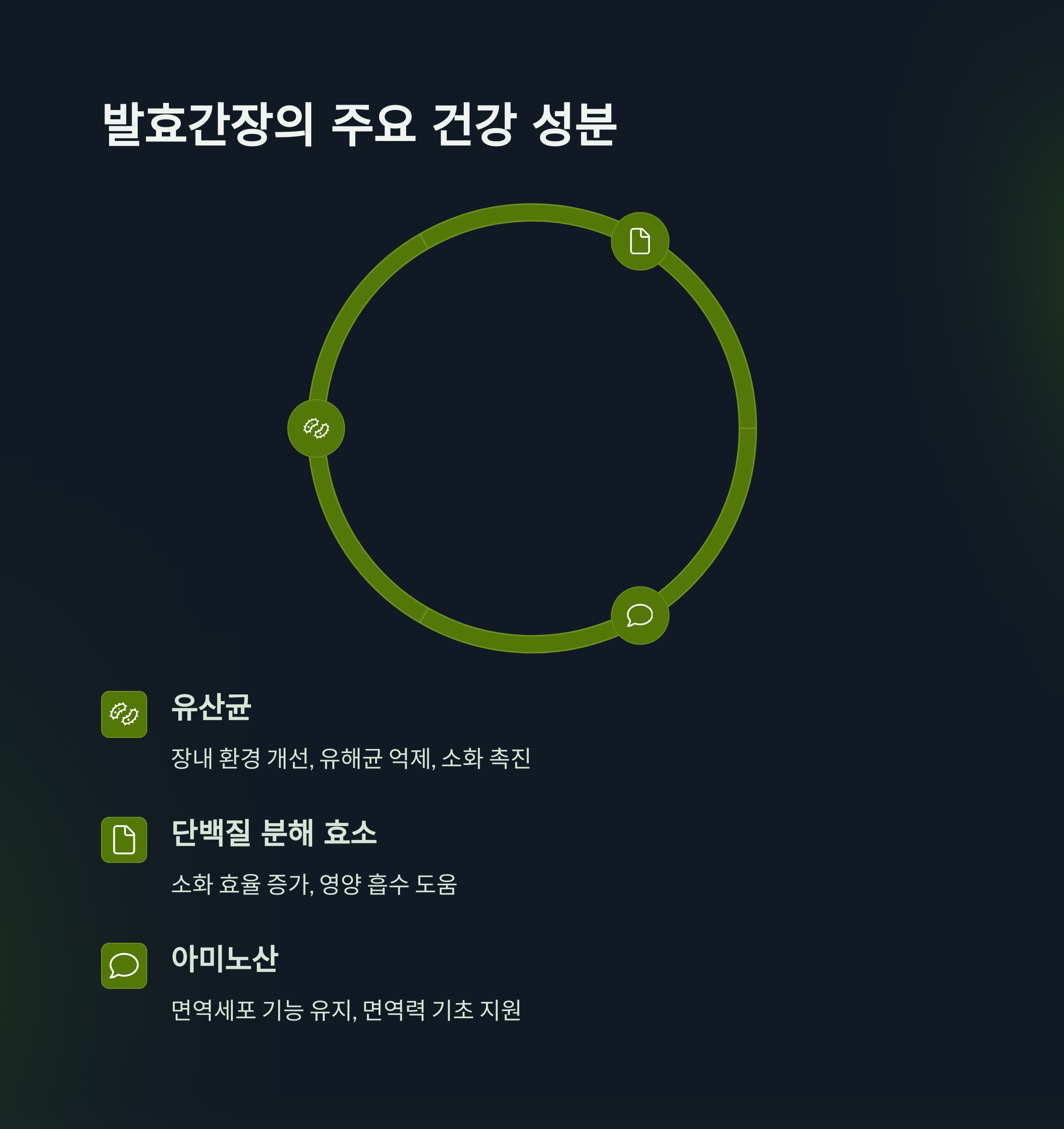 | 발효간장 성분 | 건강 효과 | 기능적 역할 |