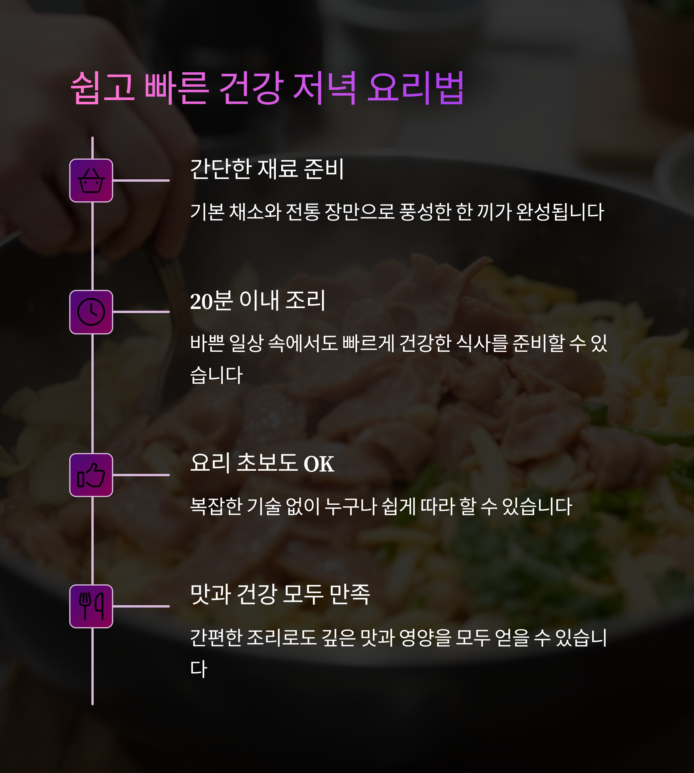 | 저녁 식사 팁 | 고단백, 저염식으로 소화 부담 줄이기 |