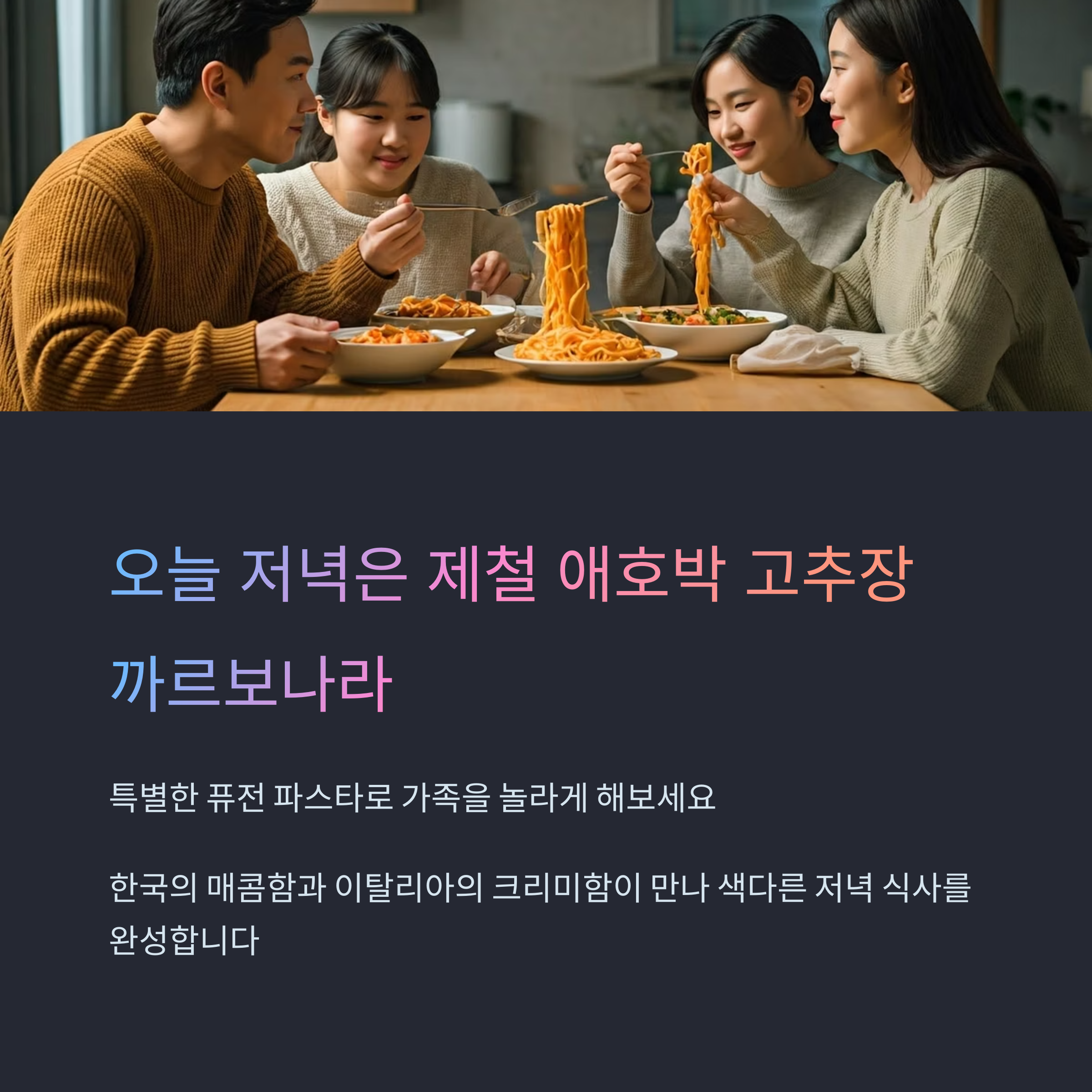 제철 애호박을 활용해 신선함을 더하고, 고추장을 크림과 부드럽게 융합시키는 레시피는 쉽고 빠르게 만들 수 있으면서도 감각적인 식사로 이어집니다.