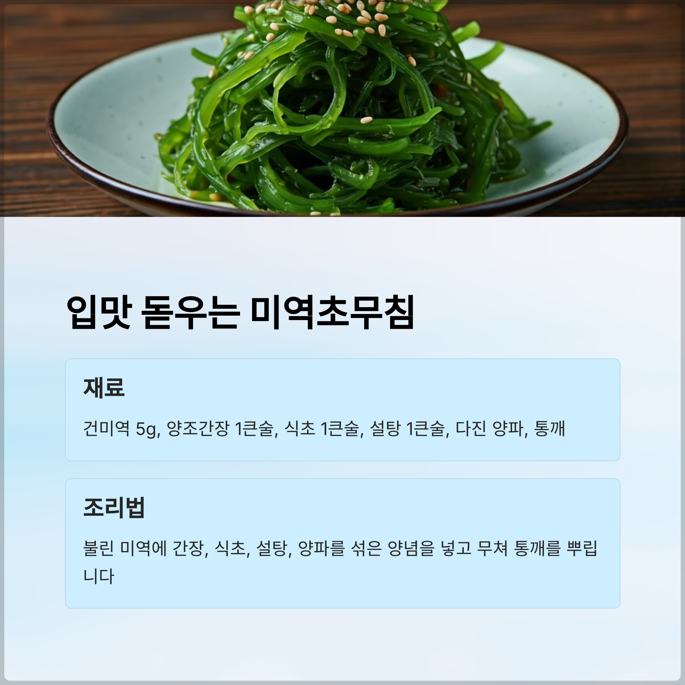 | 미역초무침 | 입맛 돋우는 새콤한 바다향 |