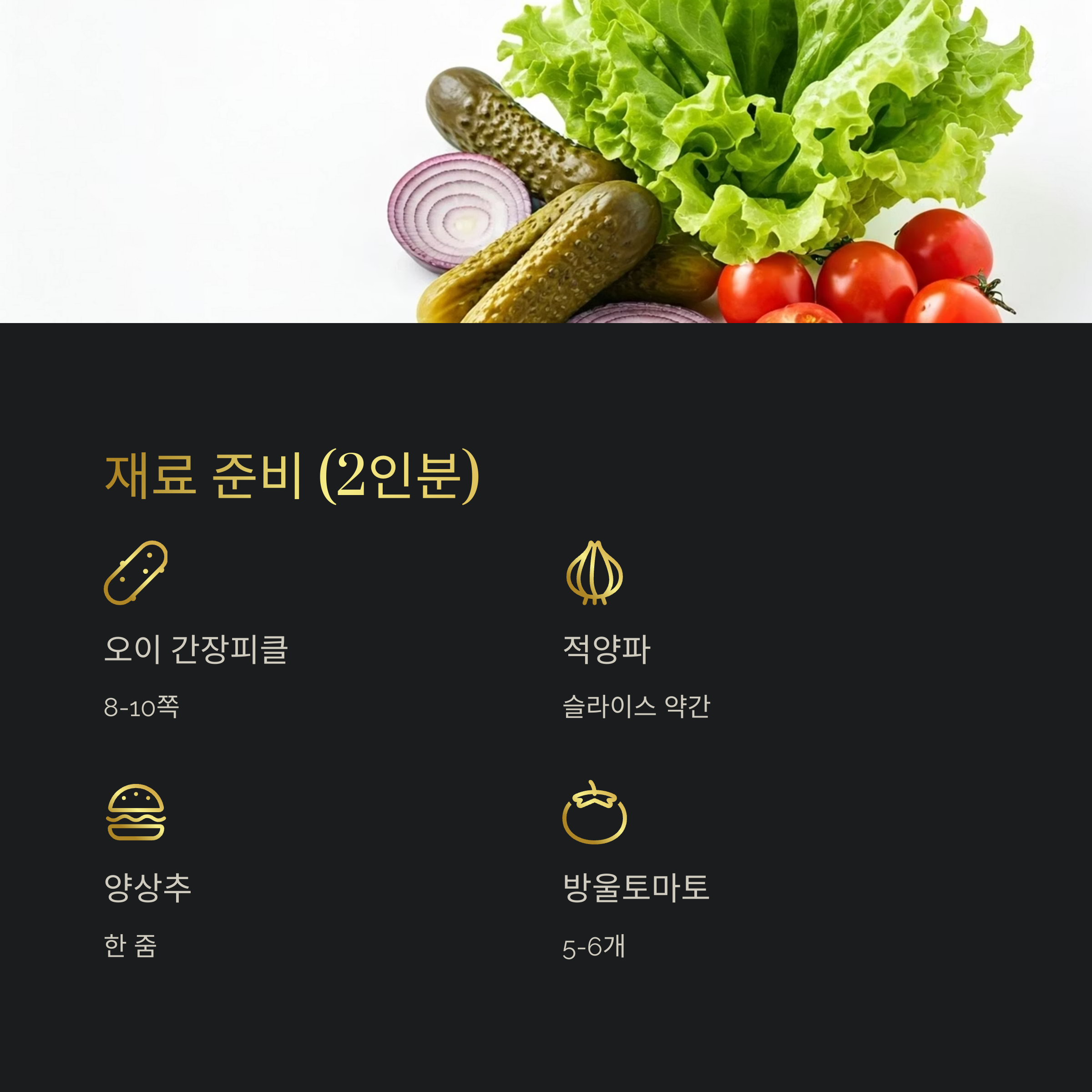 - 간장피클은 수제 장아찌 또는 시판 오이 피클(간장베이스)을 사용해도 OK