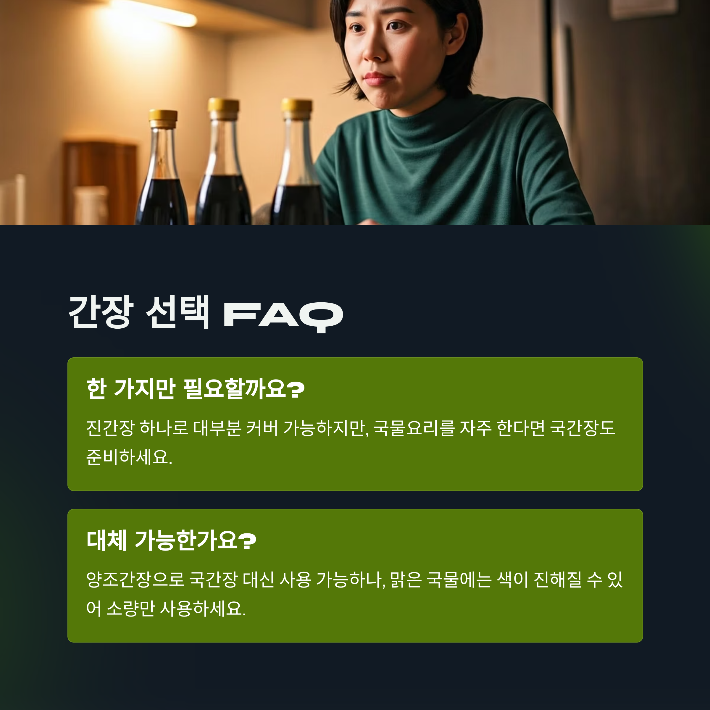 Q. 간장은 한 가지면 안 되나요? 꼭 여러 종류가 필요해요?