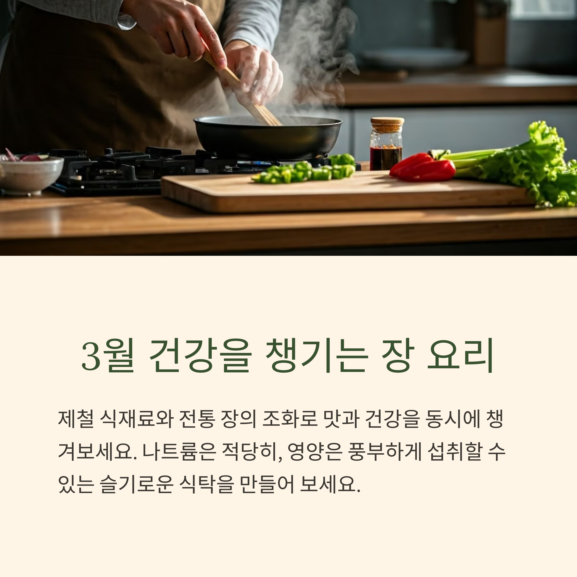 3월의 제철 재료와 전통 장을 조화롭게 활용하면 계절에 맞는 영양소를 균형 있게 섭취할 수 있습니다. 냉이, 달래, 쑥, 주꾸미, 미나리 등 봄 제철 식재료로 만든 된장국, 무침, 볶음 요리는 맛은 물론 장 건강에도 효과적입니다. 간편한 1~2인분 레시피로 집에서도 쉽게 건강한 봄 밥상을 완성해보세요.