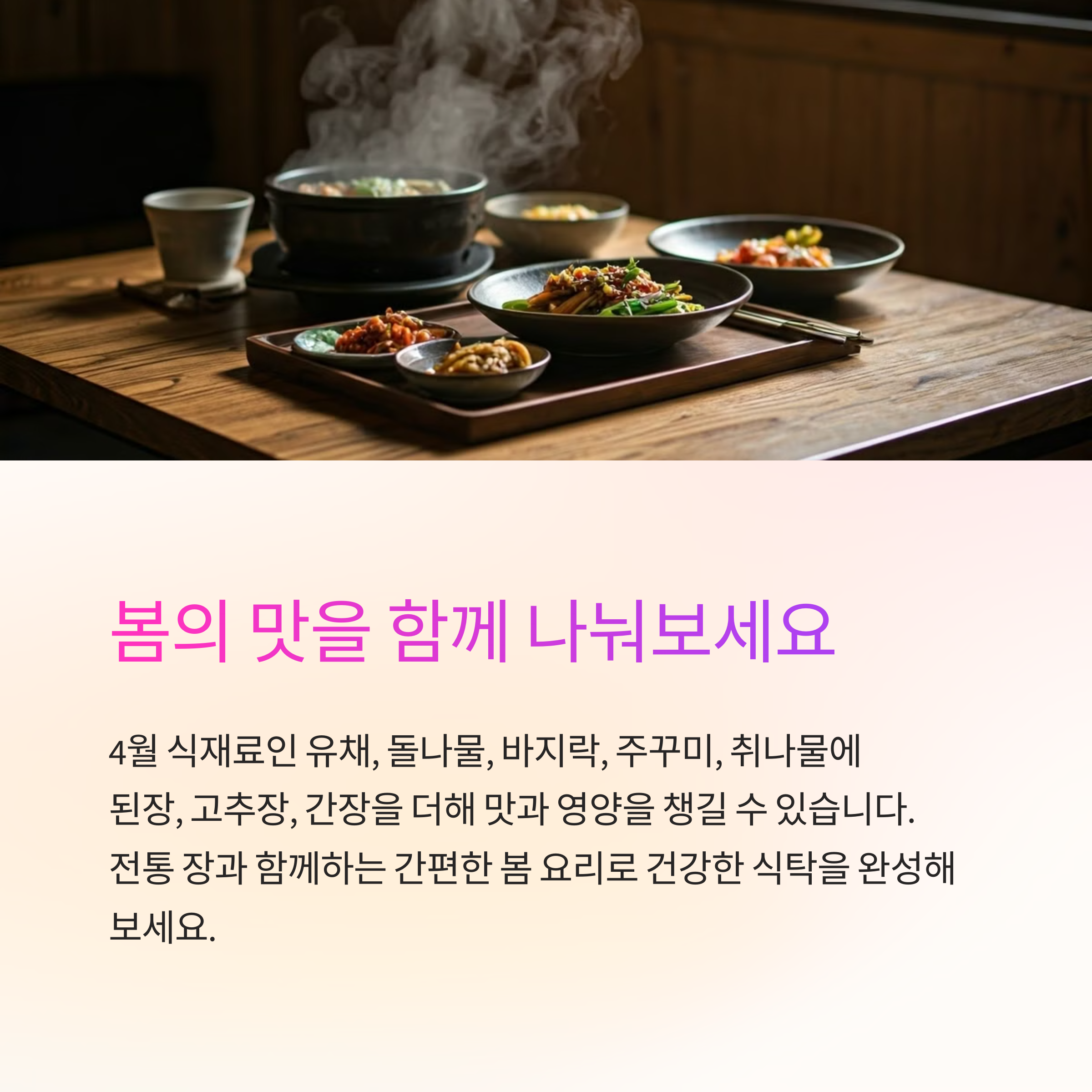 봄의 절정, 4월 제철 식재료와 전통 장의 맛있는 만남