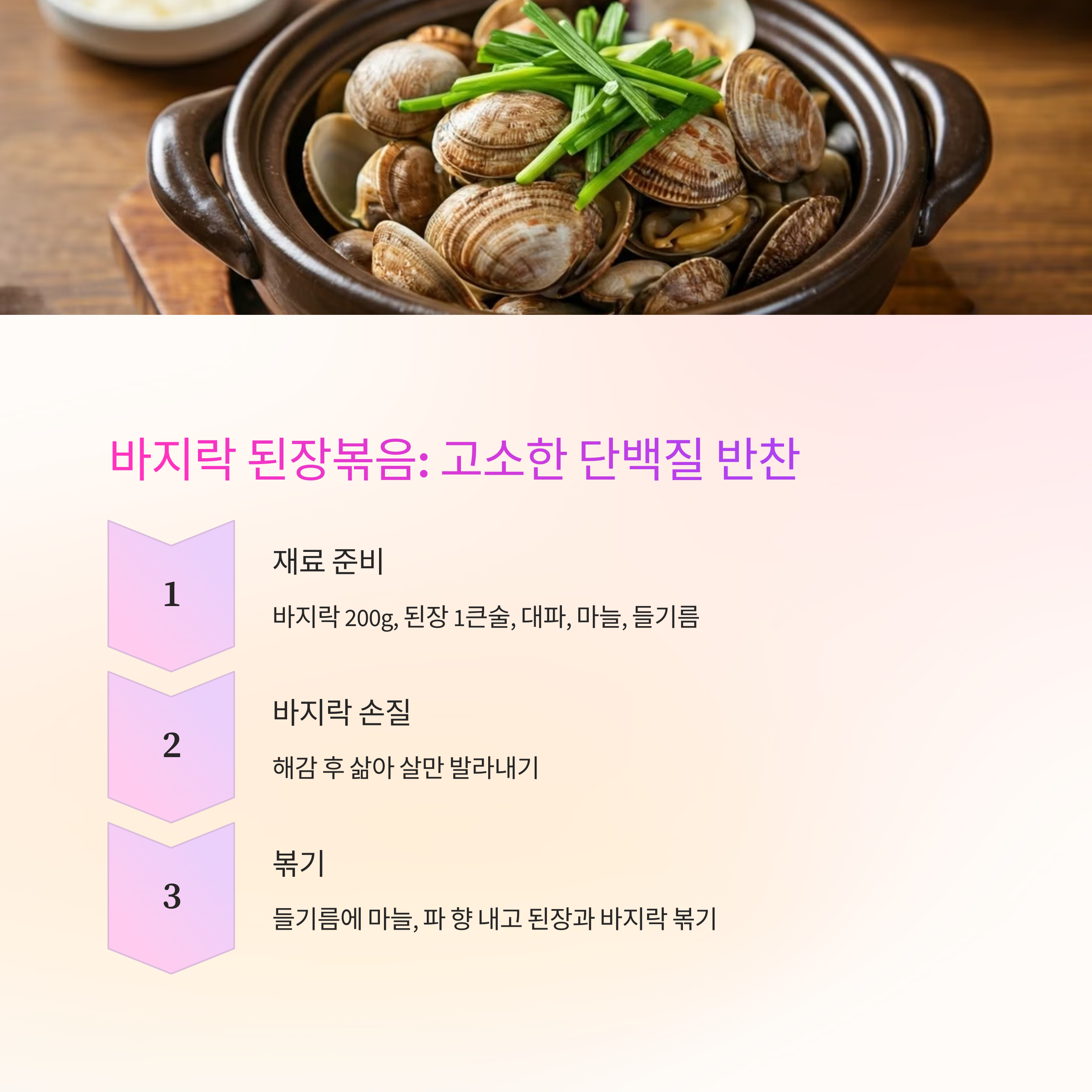 3. 바지락 된장볶음 (1~2인분)