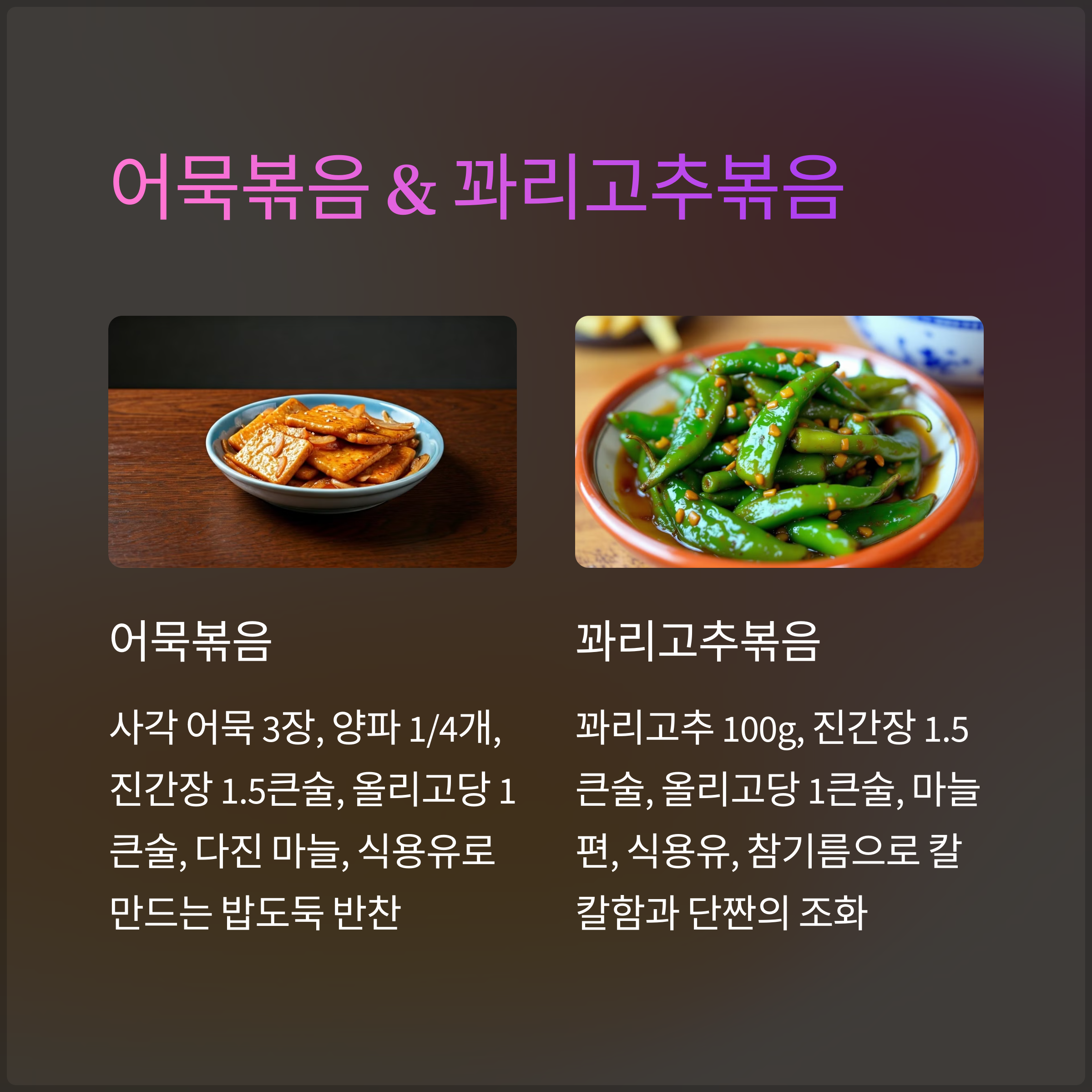 | 꽈리고추볶음 | 칼칼함과 단짠 조화 |